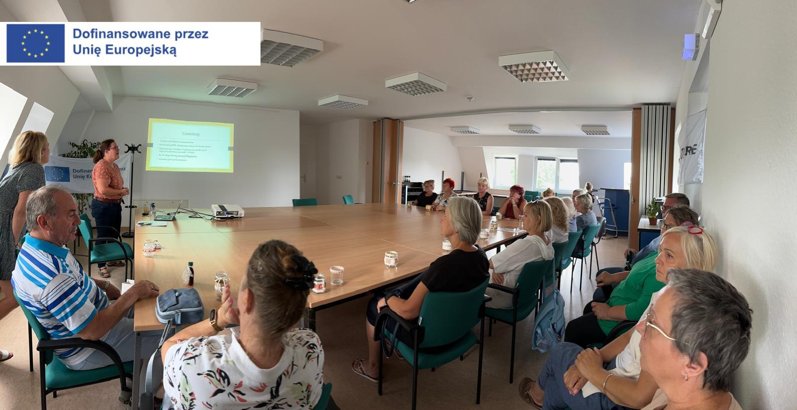 Kluczową rolę w realizacji mobilności ponadnarodowej w ramach projektu „Aktywuj się! - zwiększenie uczestnictwa seniorów wykluczonych społecznie w procesie kształcenia przez całe życie.” pełnią pracownicy partnera ponadnarodowego VFBQ Bad Freienwalde e.V.. Nasi słuchacze mieli przyjemności uczestniczyć w wykładzie pani prezes Sabine Baarsch na temat systemu socjalnego na rzecz seniorów w Niemczech. Wykład zakończył się debatą porównawczą na temat działań na rzecz aktywizacji osób w wieku senioralnym w Polsce i w Niemczech. Dziękujemy! Działania są dofinansowane ze środków Unii Europejskiej w ramach Programu Erasmus+. Erasmus+ Edukacja dorosłych Typ akcji: AKCJA 1 Mobilność dorosłych osób uczących się i kadry edukacji dorosłych (KA122-ADU) w terminie do do 20 lutego 2024 r. Numer wniosku: 2024-1-PL01-KA122-ADU-000195893.